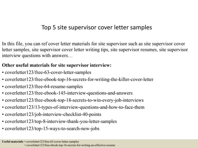 Construction Supervisor Cover Letter. Crafting a Construction Supervisor cover letter that catches the attention of hiring managers is paramount to getting the job and LiveCareer is here to help you stand out from the As a highly skilled Construction Supervisor I read your posting for a new Construction Supervisor with interest. I know that my managerial skills and ability to motivate my construction crew would be a benefit to Isbir Construction.