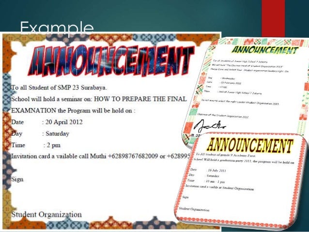 SHORT MESSAGE, ANNOUNCEMENT, ADVERTISEMENT