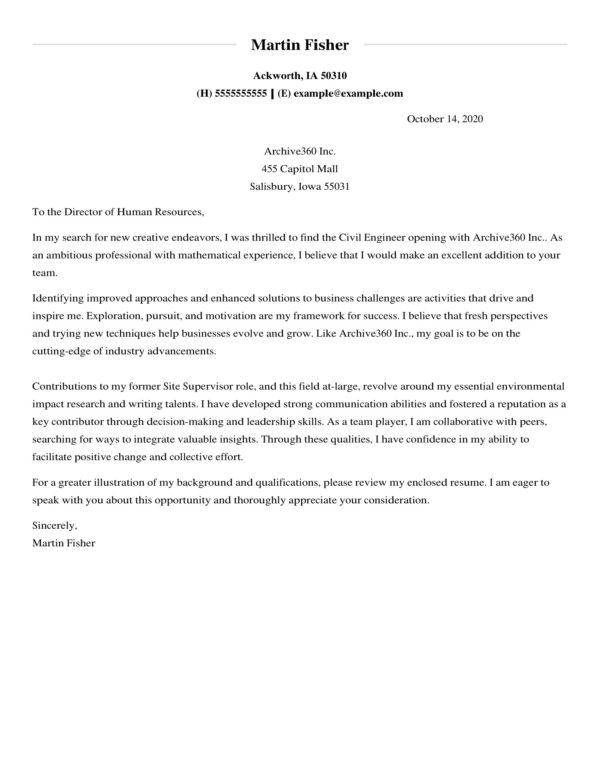Civil Engineering Cover Letter. It further focuses on your key experience and background that can perfectly fit in the. This document also markets your creativeness, writing style, and personality.